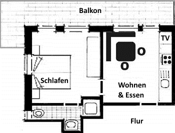 Wohnung Orchidee + Balkon 1 - 2 Personen ab 60,00 € Kurzzeitzuschlag unter 5 Nächten 15,00 € Preise zzgl. Kurtaxe.